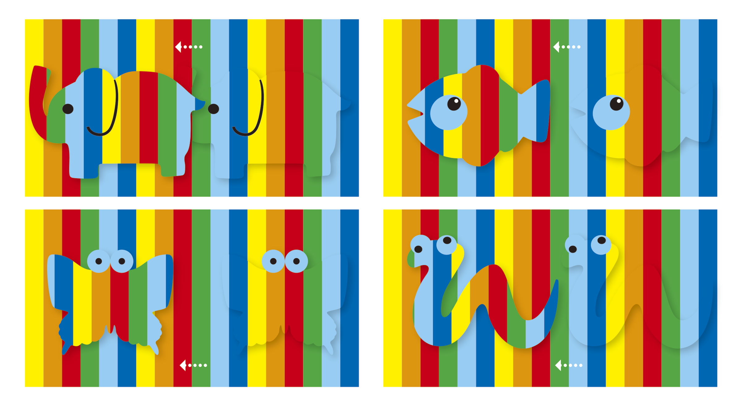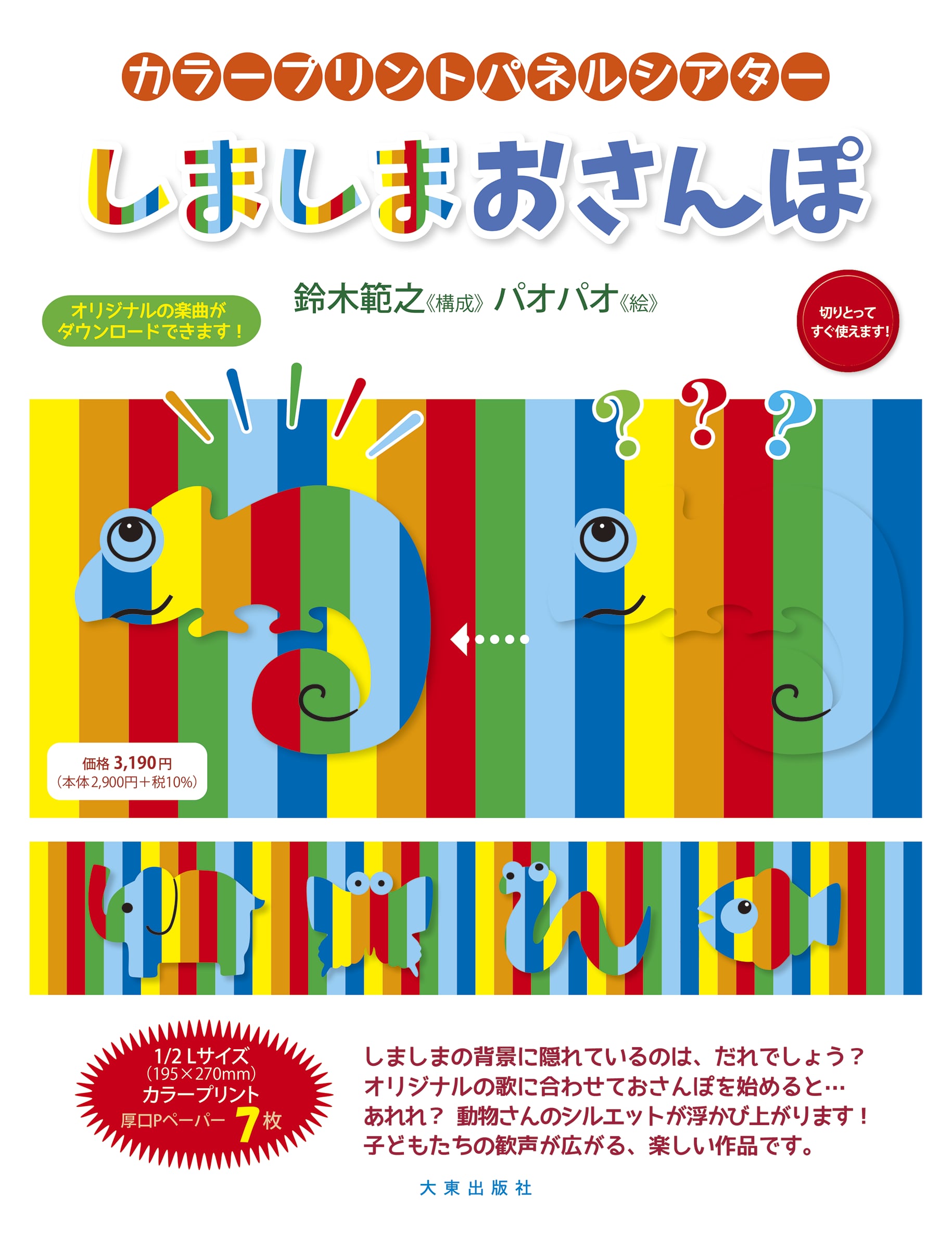 しましまの背景に隠れているのは、だれでしょう? オリジナルの歌に合わせておさんぽを始めると……あれれ? 動物さんのシルエットが浮かび上がります!子どもたちの歓声が広がる、楽しいパネルシアターの作品です。★楽曲をダウンロードいただけます。